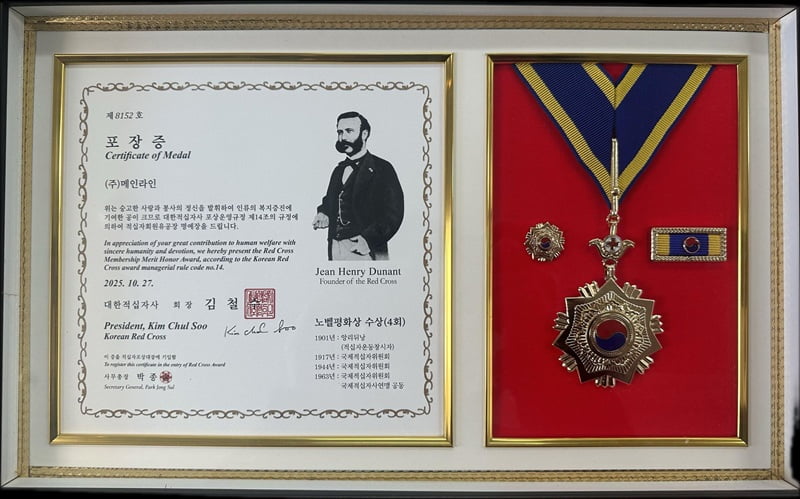 AI전문기업 메인라인(대표 최현길)이 기업의 나눔 가치 실천으로 대한적십자로부터 회원유공장 명예장을 수여받았다.