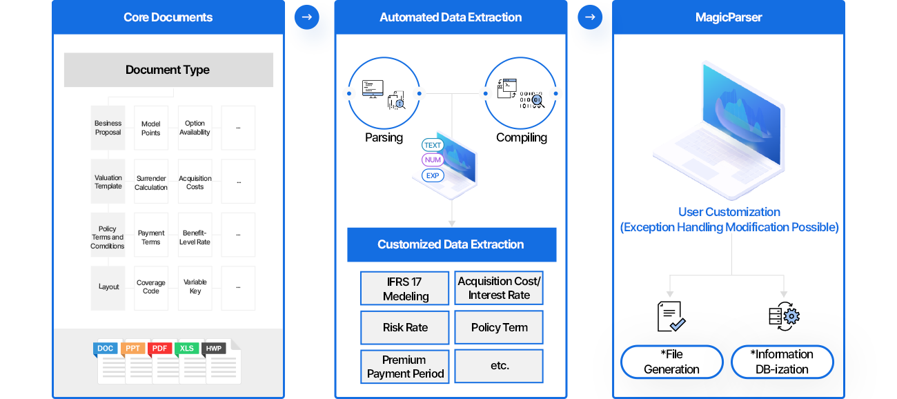 This is an automated data extraction solution that extracts and provides customized data from insuarance companies' core and supporting document data.